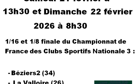 CLUBS_SPORTIF] Pour la reprise du championnat, Toulouse se déplaçait à Pont-de-Claix en Isère avec un effectif fortement remanié et rajeuni. Les 2 équipes se partagent les points du 1er tour avec 2 victoires en simple et combiné et 2 défaites en triple et double. En course, le beau score de […]