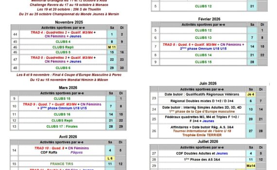 Tout joueur licencié « COMPETITION » et souhaitant changer d’A.S doit remplir une demande de mutation.Tout licencié qui quitte son C.B.D, part avec sa nouvelle catégorisation.Les mutations sont libres, sans limitation dans les compositions d’équipes en traditionnel et ce pour toutes les divisionsmasculines et féminines mais font l’objet d’une redevance facturée par […]