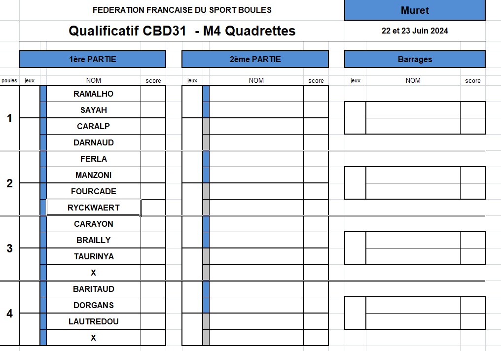• Qualificatif Vétérans Quadrettes M4 à Saint JORY 13 & 14 mai 2025